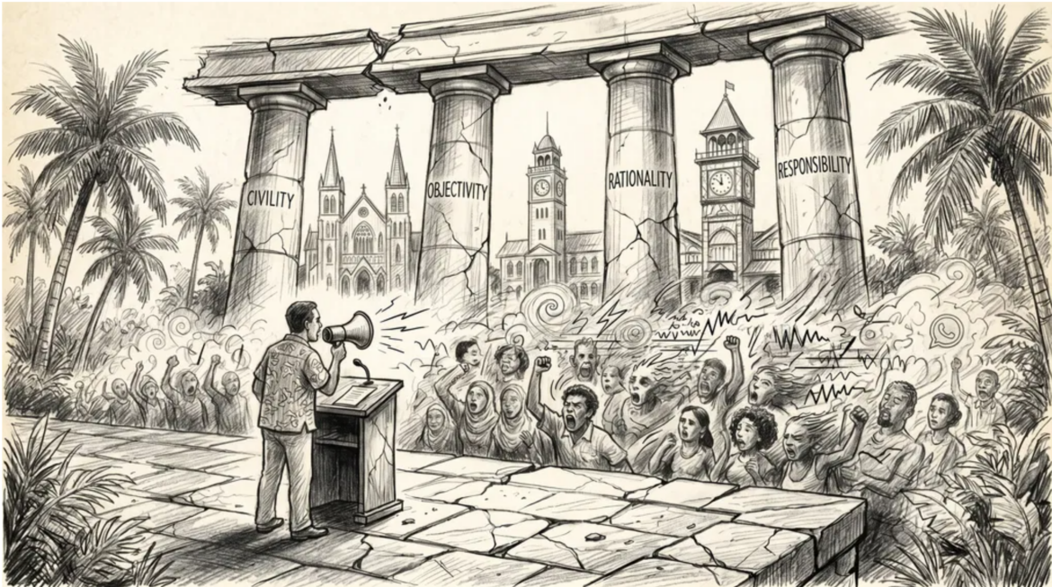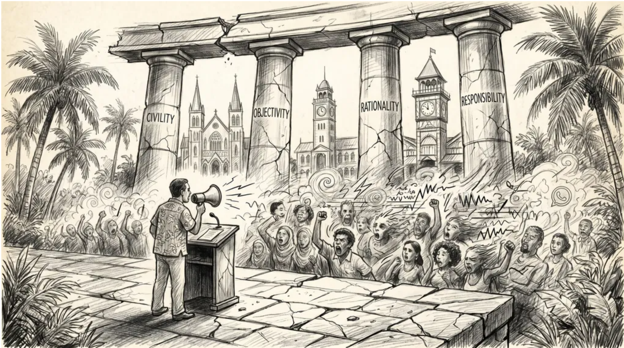 The project before us — in the United States, in Guyana, in any republic worth keeping — is not to make our public discourse dull. It is to make it serious. Civility, objectivity, rationality, responsibility: these are not the manners of a tea-room. They are the load-bearing walls of a free society. We tear them down at our peril, and we rebuild them only when the cost of their absence has become unbearable.